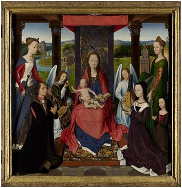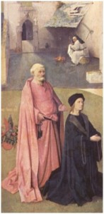 Besonders schwierig wird es aber, wenn sich die Stifter des Werkes ebenfalls auf der Darstellung befinden. Bereits seit dem Mittelalter war es durchaus üblich, sich als Stifter oder Auftraggeber eines Werkes auf diesem mit abbilden zu lassen. Besonders beliebt wurden die Stifterfiguren durch den gesellschaftlichen Wandel in den Niederlanden im Laufe des 14. Jahrhunderts: Nicht mehr ausschließlich die Kirche, sondern auch weltliche Mäzene gehörten nun zu den wichtigsten Auftraggebern der bildenden Kunst, und für die private Andacht zu Hause wurden immer mehr christliche Bildthemen und Altarretabel in Auftrag gegeben.