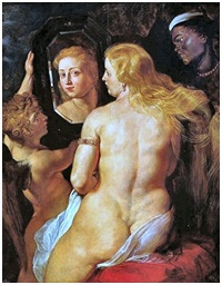 Peter Paul Rubens, Venus vor dem Spiegel, um 1614. Öl auf Holz, 124 x 98 cm. Sammlungen des Fürsten von und zu Liechtenstein, Vaduz – Wien.