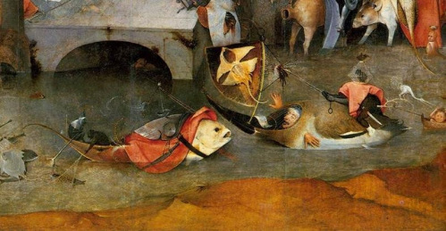 Uno de los artistas en duda es El Bosco: ¿era realmente un genio con una imaginación desbordante o simplemente alucinaba por efecto de algo raro en la comida (el moho en el grano era frecuente)? ¿Quizá simplemente estaba loco? ¿Quizá era un hereje? ¿Un mojigato que quería que todo aquel con algo de alegría de vivir quedara amedrentado por los peligros del infierno durante el resto de sus días? Lo cierto es que, si miramos de cerca cualquiera de sus cuadros, veremos elementos que nos resultaran muy familiares y no tan lejanos en el tiempo. Personalmente encuentro que sus obras podrían ser consideradas surrealismo si tomamos los elementos por separado. Analicemos por ejemplo el tríptico Las tentaciones de San Antonio.