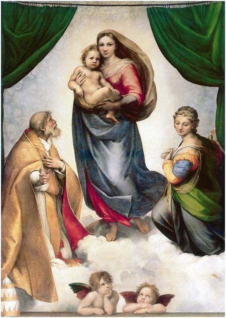 Rafael, La Madonna Sixtina, 1513-1514. Óleo sobre lienzo, 265 × 196cm. Gemäldegalerie Alte Meister, Dresde.