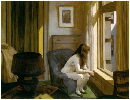 Nada nos prohíbe estar tristes de cuando en cuando. A veces, es el único remedio sensato, pues de todos es sabido que la alegría en estómago vacío no cae nada bien. Así pues, si adoleces de esa melancolía que llena los espacios entre un gozo y otro o si quieres sentirte solo entre la multitud, no te pierdas la exposición «Hopper» abierta hasta el 16 de septiembre de 2012. Si no te es posible, no te inquietes; siéntate, reposa los codos sobre el regazo, e imprégnate de realidad con Hopper allí donde estés.