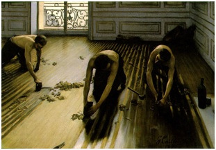 Gustave Caillebotte, Raboteurs de parquet, 1875. Huile sur toile, 102 x 147 cm. Musée d’Orsay, Paris.